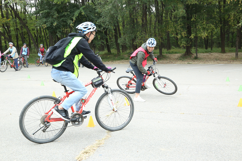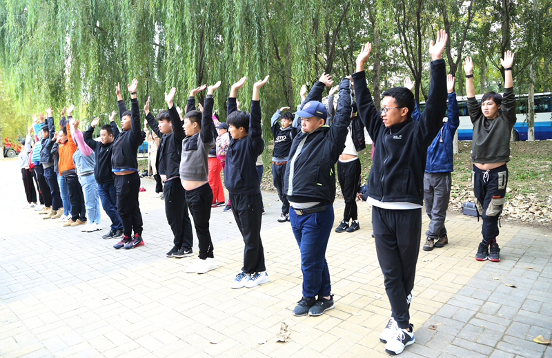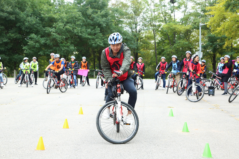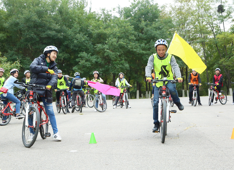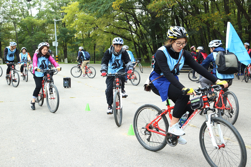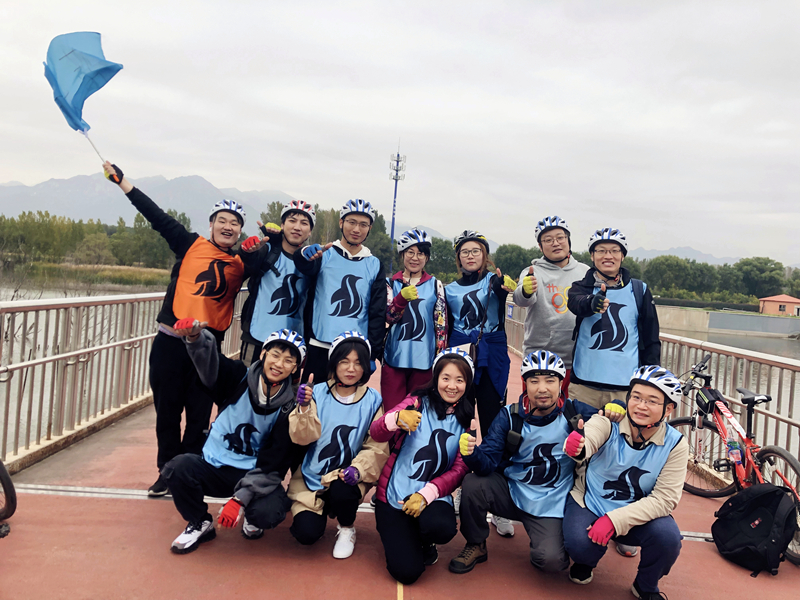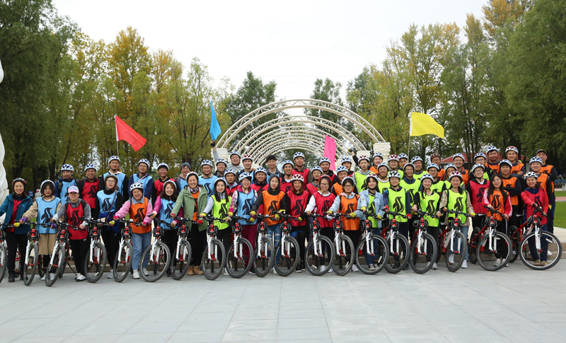 早上,乘大巴到达延庆妫河森林公园,随后分组进行了热身运动,为我们的十公里骑行做准备。