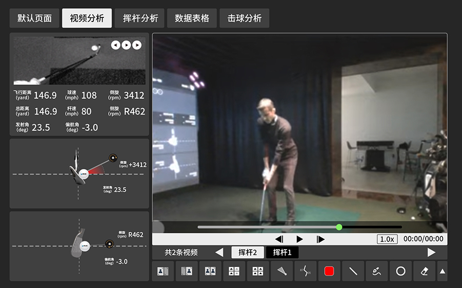 挥杆后,可查看杆面走向,对比分析杆面数据,从而提升球技。